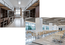 宿舍按照標(biāo)準(zhǔn)配備齊全,空調(diào)、衛(wèi)生間等一應(yīng)俱全。